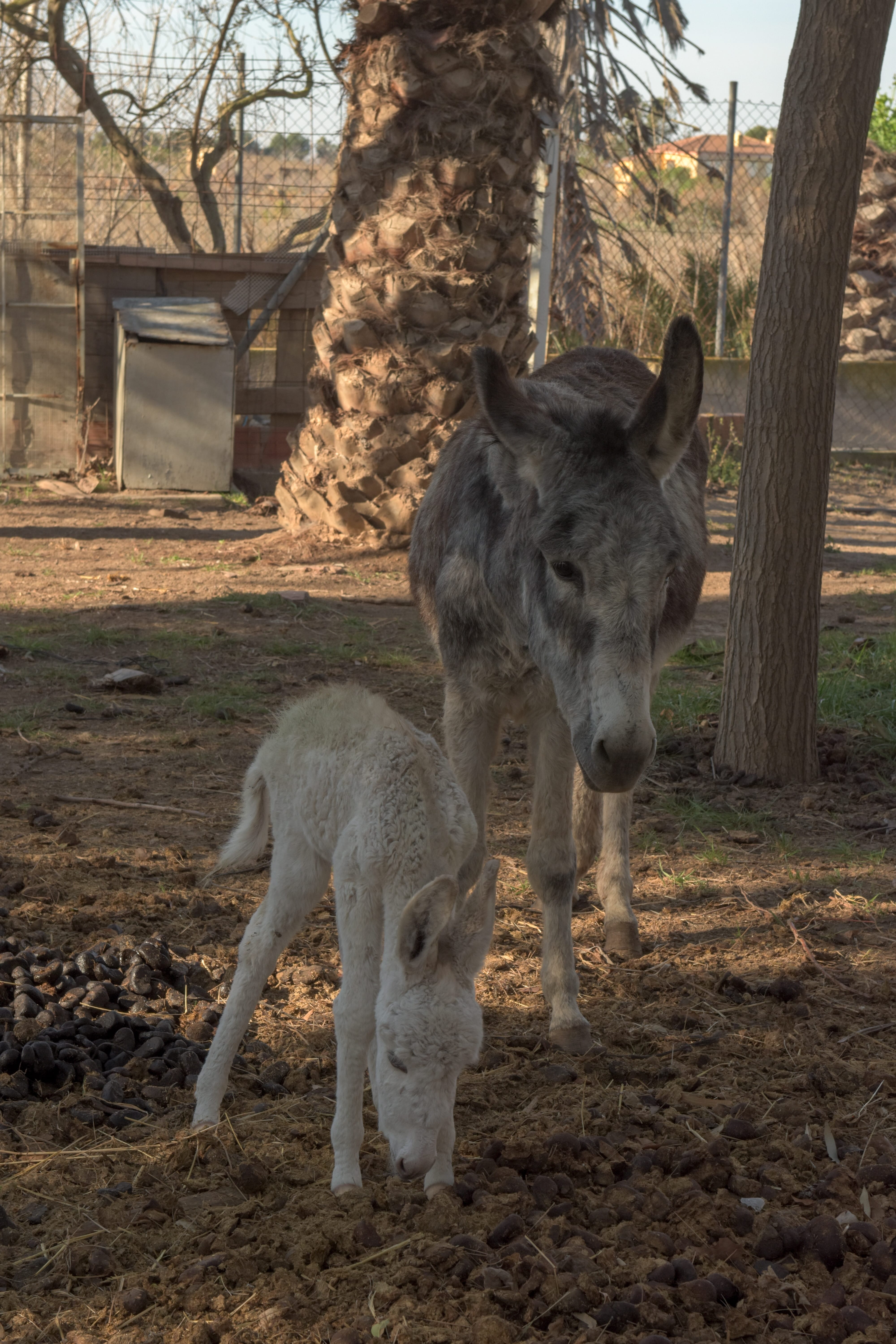 Vorgestern hatten wir uns vorgenommen, nach einer relativ langen (und langweiligen) Autobahnfahrt irgendwo in der Nähe vom Ebro-Delta (vorzugsweise am Playa de Eukalyptus – danke, Bernhard!) zu nächtigen, allerdings haben wir den Strand nicht auf Anhieb gefunden und haben daher, weil wir die Nase vom Fahren voll hatten, die Stay4Night App befragt und die hat uns an einen Stellplatz direkt am Strand von Deltebre verwiesen (N 40° 43′ 56″, E 0° 49′ 52″). Bei der Ankunft haben wir erst mal einen Schreck gekriegt, der Platz sah auf den ersten Blick nicht sehr einladen aus (das sieht in der Nebensaison allerdings kein Platz in Spanien), was uns allerdings doch zum Stehenbleiben genötigt hat, war ein Bulli mit Mannheimer Kennzeichen MA-UI XXX (wir haben MA-UI 333). Ich hab dann die beiden aus dem Bulli angesprochen und die haben sich als sehr nettes Paar aus Großsachsen-Hirschberg entpuppt (Tom und Susanne). Der Chef vom Platz, Ralf, ein Altfreak ausm Schwabeländle und seine Lebensgefährtin Bea, bewirtschaften den Platz schon seit einigen Jahren, haben dort ein Restaurant (was leider noch nicht offen war) und drei Esel (Mama, Papa und eine kleine Frühgeburt, die gerade mal sechs Tage alt war):